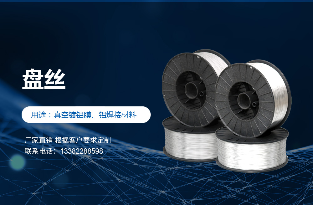 高純度鋁絲:公司主打產(chǎn)品。SGS認證產(chǎn)品,適用于真空鍍鋁。可為客戶量身定做生產(chǎn)的各盤裝鋁絲、鋁直條。產(chǎn)品應(yīng)用領(lǐng)域十分廣泛,如:真空鍍鋁膜、電器儀表、電子、家電業(yè)、電線電纜業(yè)、建筑裝飾業(yè)、五金裝飾業(yè)、IT電腦業(yè)、廣告裝飾業(yè)、醫(yī)療器械、工藝制品、防腐制品(大型港口、橋梁、碼頭)、食品包裝容器、紡織服裝等。